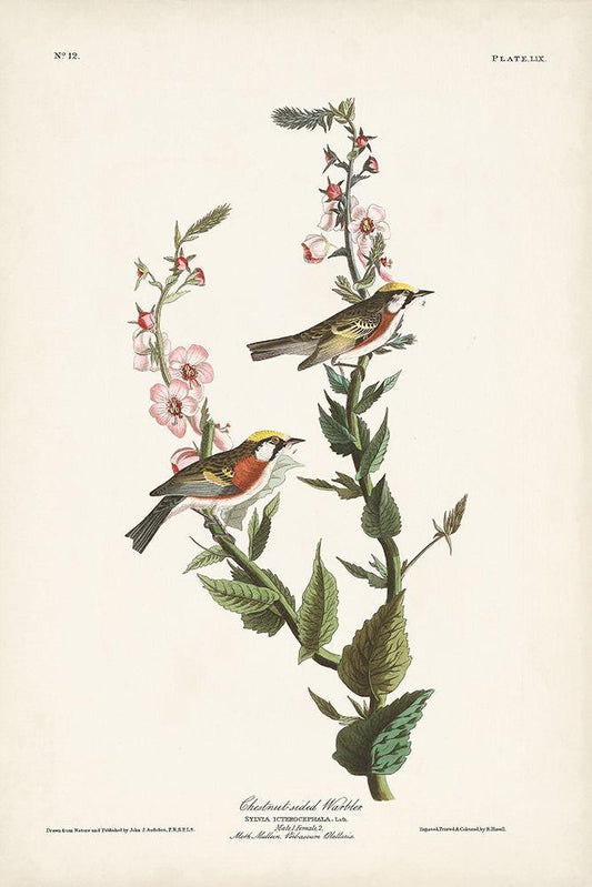 Pl. 59 Chestnut-sided Warbler White Modern Wood Framed Art Print with Double Matting by Audubon, John James