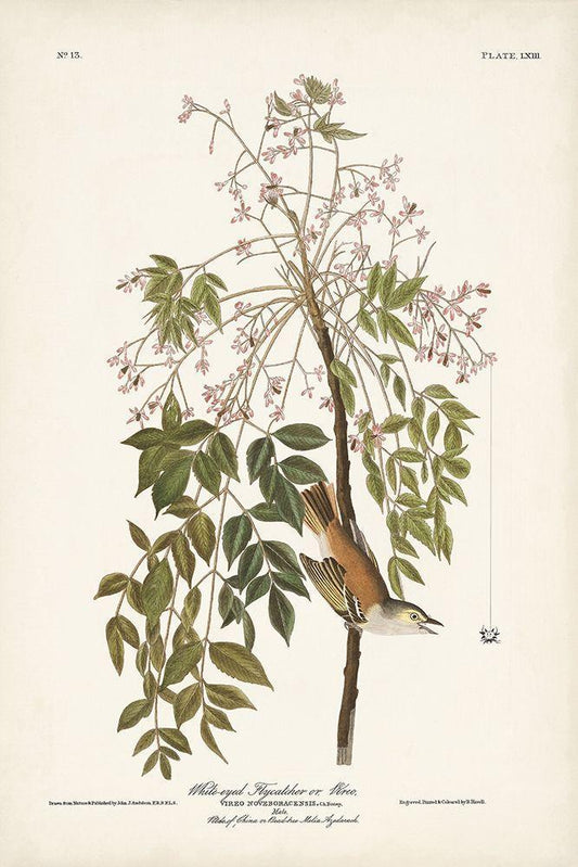 Pl. 63 White-eyed Flycatcher White Modern Wood Framed Art Print with Double Matting by Audubon, John James