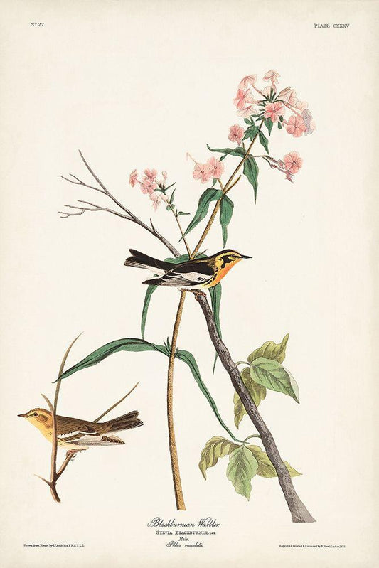 Pl. 135 Blackburnian Warbler White Modern Wood Framed Art Print with Double Matting by Audubon, John James