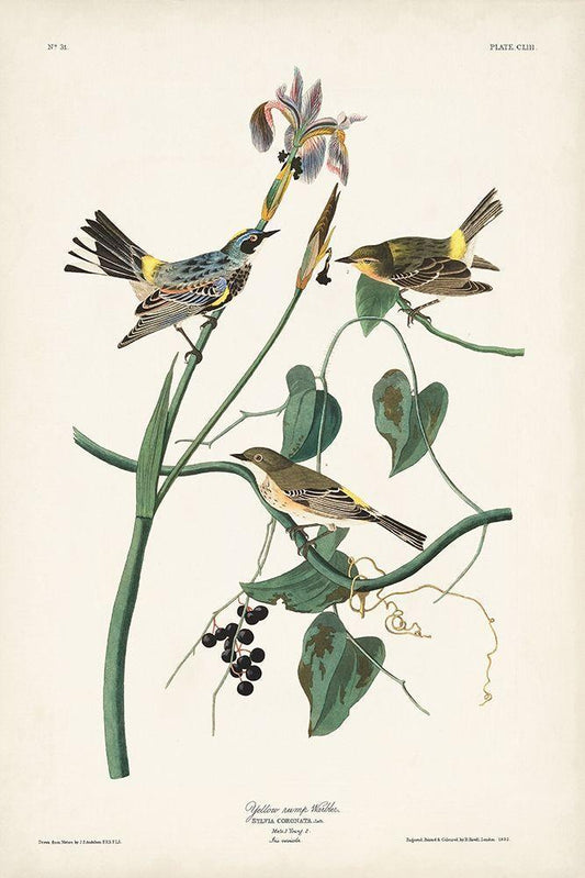 Pl. 153 Yellow-rump Warbler White Modern Wood Framed Art Print with Double Matting by Audubon, John James