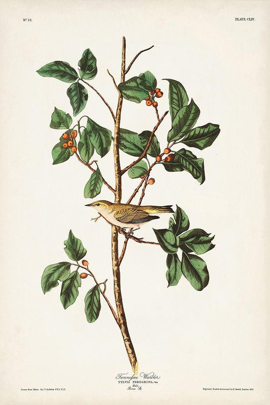 Pl. 154 Tennessee Warbler White Modern Wood Framed Art Print with Double Matting by Audubon, John James