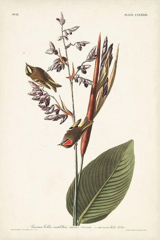 Pl. 183 American Golden-crested Wren White Modern Wood Framed Art Print with Double Matting by Audubon, John James