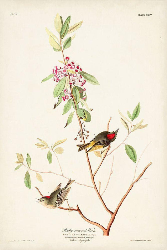 Pl. 195 Ruby-crowned Wren White Modern Wood Framed Art Print with Double Matting by Audubon, John James