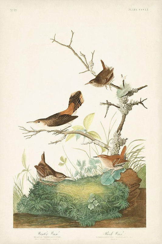 Pl. 360 Winter Wren White Modern Wood Framed Art Print with Double Matting by Audubon, John James