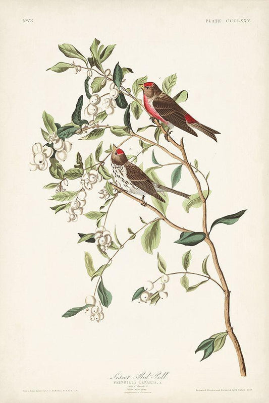 Pl. 375 Lesser Red Poll White Modern Wood Framed Art Print with Double Matting by Audubon, John James