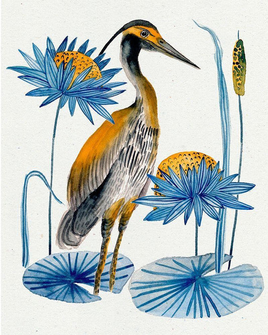 Heron Pond I White Modern Wood Framed Art Print with Double Matting by Wang, Melissa