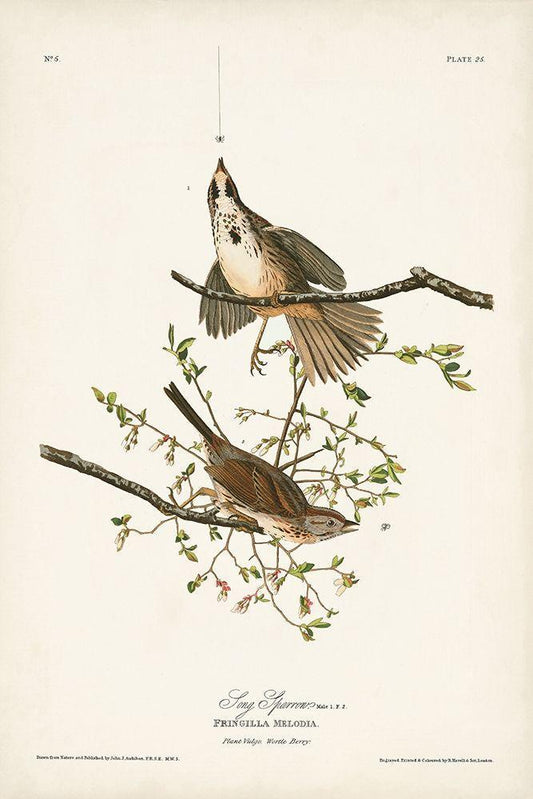 Pl. 25 Song Sparrow White Modern Wood Framed Art Print with Double Matting by Audubon, John James