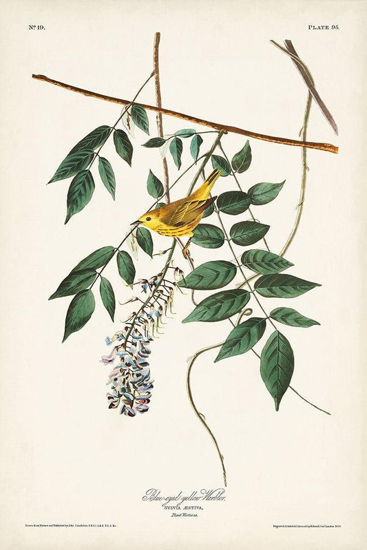 Pl. 95 Blue-eyed Yellow Warbler White Modern Wood Framed Art Print with Double Matting by Audubon, John James