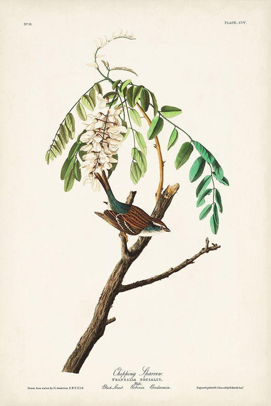 Pl. 104 Chipping Sparrow White Modern Wood Framed Art Print with Double Matting by Audubon, John James