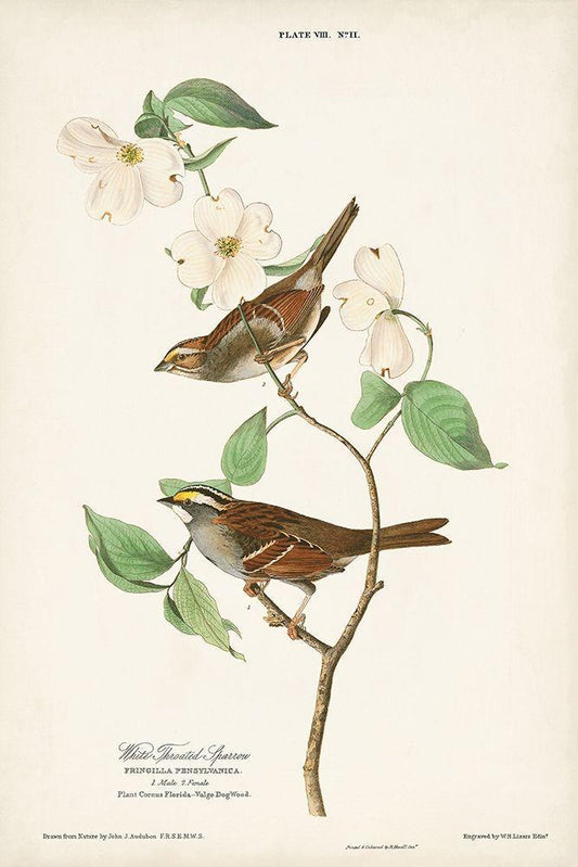 Pl.8 White-throated Sparrow White Modern Wood Framed Art Print with Double Matting by Audubon, John James