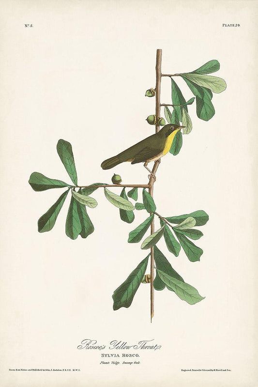 Pl. 24 Roscoes Yellow Throat White Modern Wood Framed Art Print with Double Matting by Audubon, John James