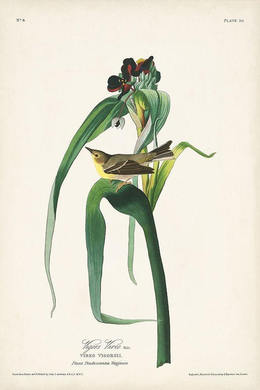 Pl. 30 Vigors Vireo White Modern Wood Framed Art Print with Double Matting by Audubon, John James