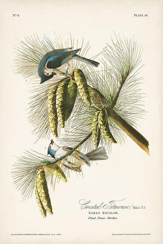 Pl. 39 Crested Titmouse White Modern Wood Framed Art Print with Double Matting by Audubon, John James