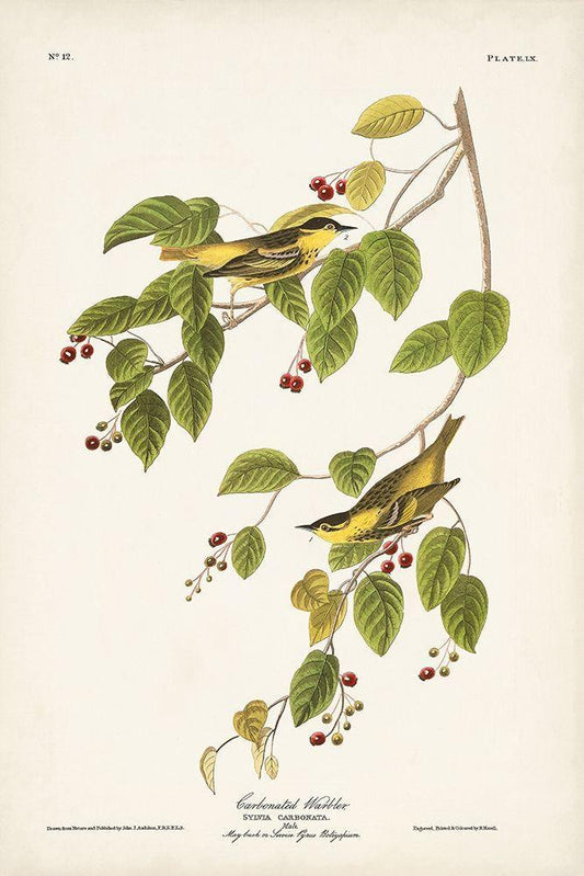 Pl. 60 Carbonated Warbler White Modern Wood Framed Art Print with Double Matting by Audubon, John James