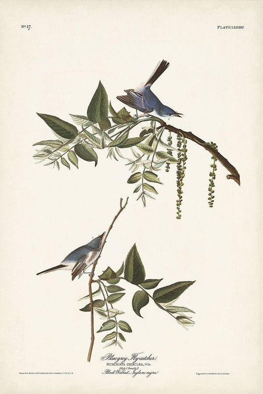 Pl. 84 Bluegrey Flycatcher White Modern Wood Framed Art Print with Double Matting by Audubon, John James