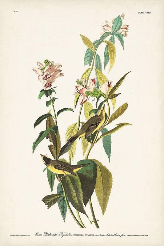 Pl. 124 Green Black-capt Flycatcher White Modern Wood Framed Art Print with Double Matting by Audubon, John James