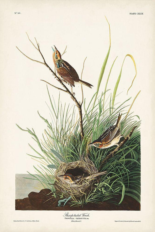 Pl. 149 Sharp-tailed Finch White Modern Wood Framed Art Print with Double Matting by Audubon, John James