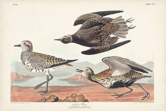 Pl. 300 Golden Plover White Modern Wood Framed Art Print with Double Matting by Audubon, John James