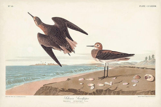 Pl. 278 Schins Sandpiper White Modern Wood Framed Art Print with Double Matting by Audubon, John James
