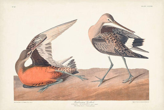 Pl. 258 Hudsonian Godwit White Modern Wood Framed Art Print with Double Matting by Audubon, John James