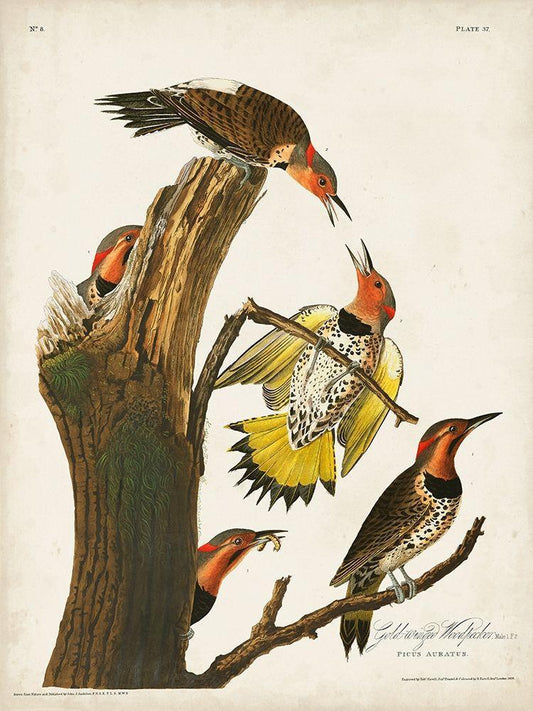 Pl. 37 Gold-winged Woodpecker White Modern Wood Framed Art Print with Double Matting by Audubon, John James