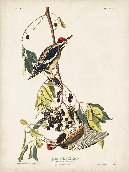 Pl. 190 Yellow-bellied Woodpecker White Modern Wood Framed Art Print with Double Matting by Audubon, John James