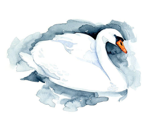 Silverlake Swan I White Modern Wood Framed Art Print with Double Matting by Green, Jacob