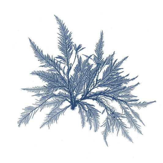 Navy Seaweed V White Modern Wood Framed Art Print with Double Matting by Vision Studio