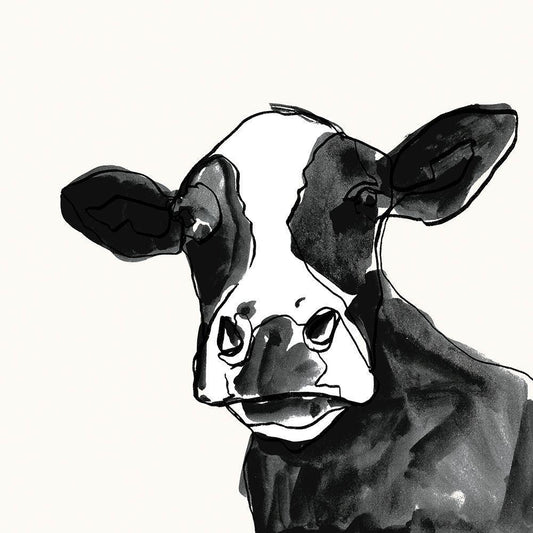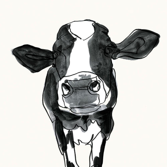 Cow Contour I White Modern Wood Framed Art Print with Double Matting by Borges, Victoria
