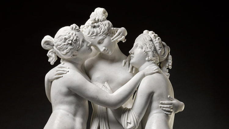 Cupid and Psyche - Detail Black Ornate Wood Framed Art Print with Double Matting by Canova, Antonio