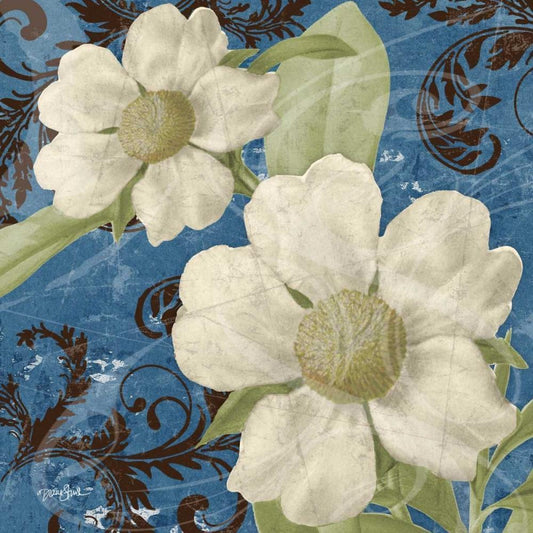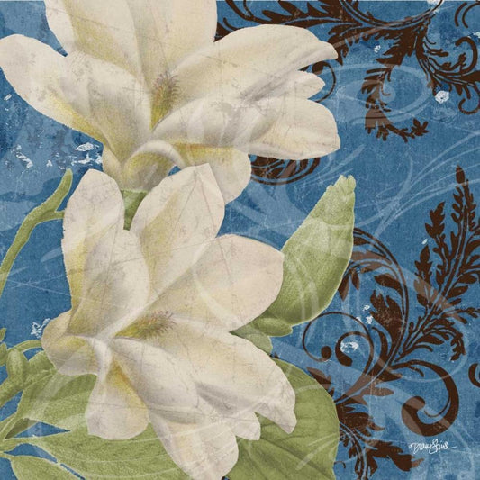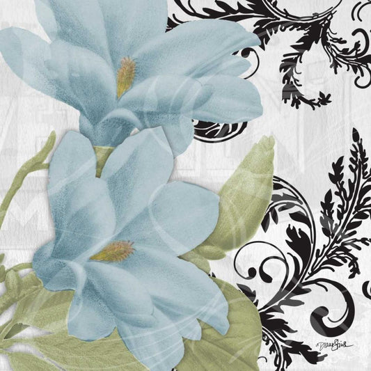 Magnolia Blue Gold Ornate Wood Framed Art Print with Double Matting by Stimson, Diane