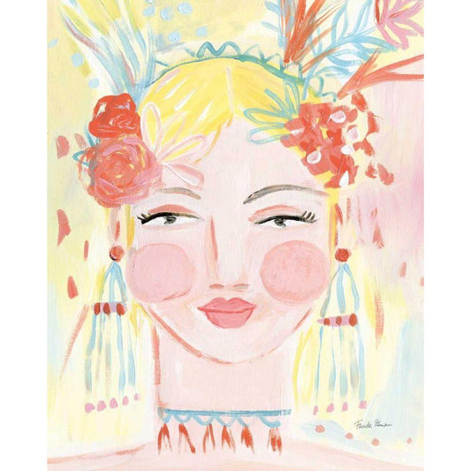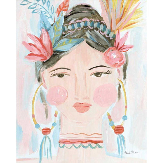 Boho Lady I Gold Ornate Wood Framed Art Print with Double Matting by Zaman, Farida
