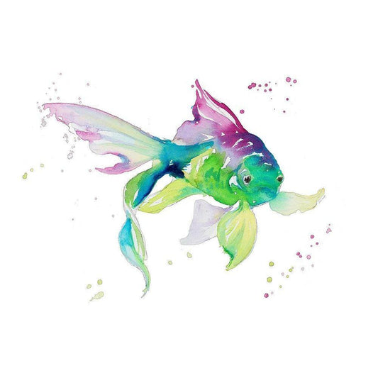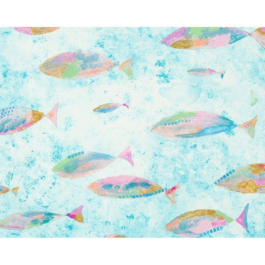 Aqua Blue Fishy Gold Ornate Wood Framed Art Print with Double Matting by Bryant, Susan