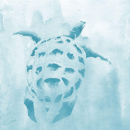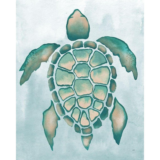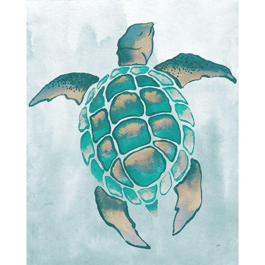 Washed Teal Aquatic Turtle Gold Ornate Wood Framed Art Print with Double Matting by Medley, Elizabeth