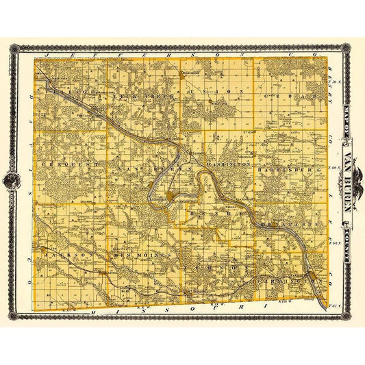 Van Buren Iowa Landowner - Andreas 1875 Gold Ornate Wood Framed Art Print with Double Matting by Andreas