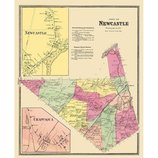 Newcastle, Chappaqua New York Landowner Gold Ornate Wood Framed Art Print with Double Matting by Beers