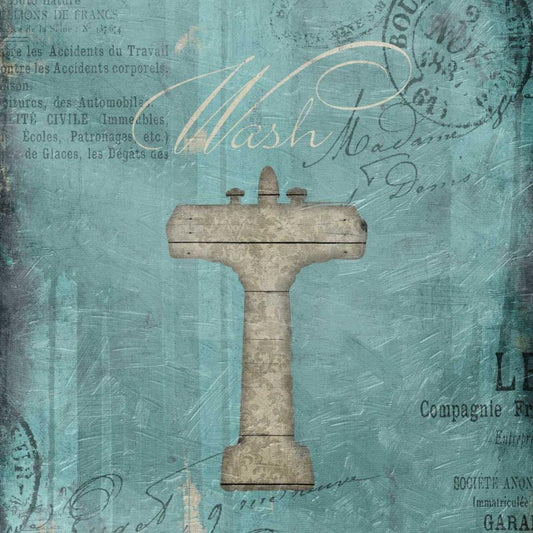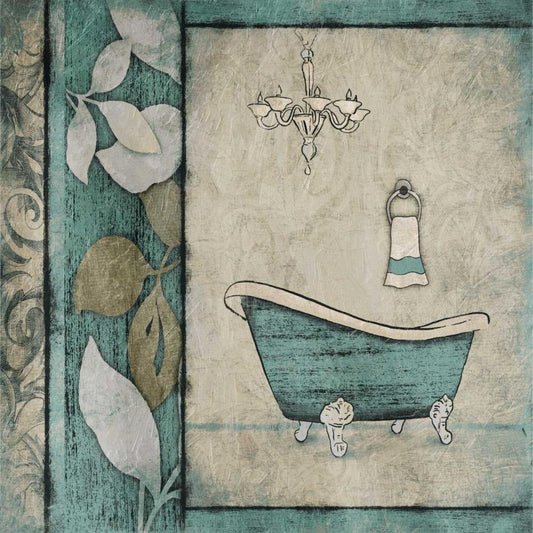 Teal Floral Bath Gold Ornate Wood Framed Art Print with Double Matting by Grey, Jace