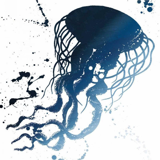 Jellyfish Splatter Indigo Gold Ornate Wood Framed Art Print with Double Matting by Grey, Jace