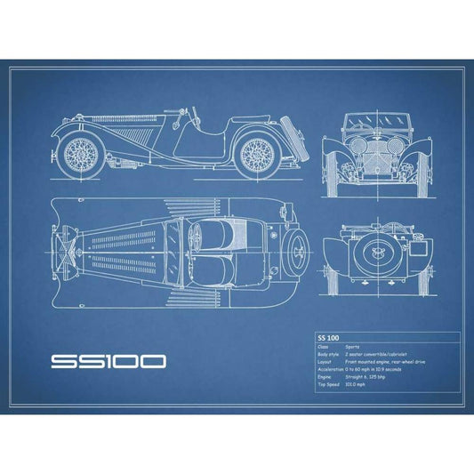 Jaguar SS-100-Blue Gold Ornate Wood Framed Art Print with Double Matting by Rogan, Mark