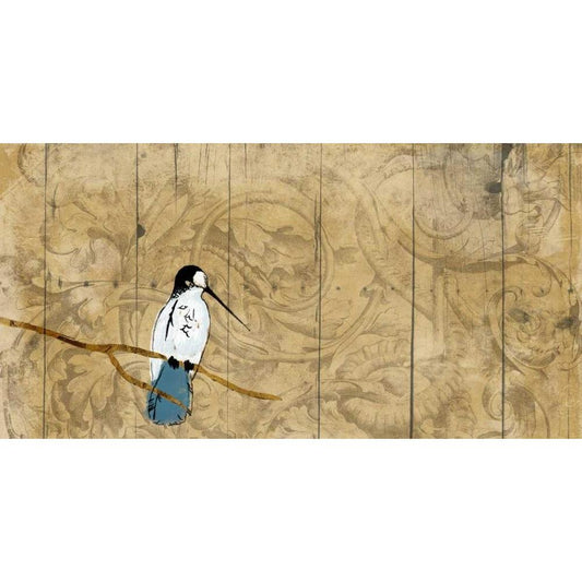 Bird on branch Horizontal Gold Ornate Wood Framed Art Print with Double Matting by Grey, Jace
