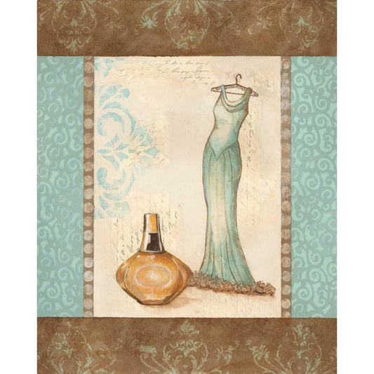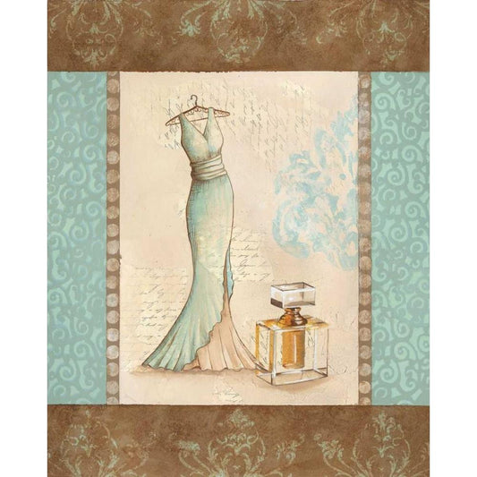 Aqua Fashion I Gold Ornate Wood Framed Art Print with Double Matting by Devereux, Sophie