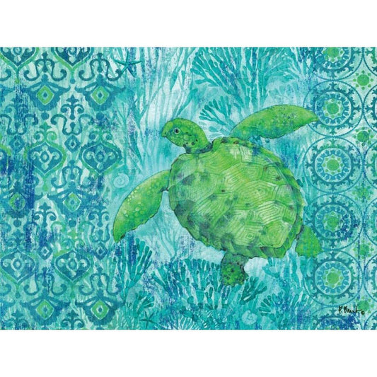 Turtle Batik Gold Ornate Wood Framed Art Print with Double Matting by Brent, Paul