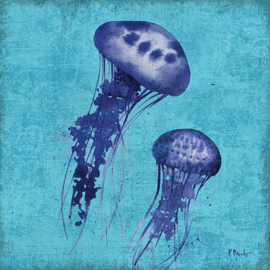 Indigo Jellyfish II Gold Ornate Wood Framed Art Print with Double Matting by Brent, Paul