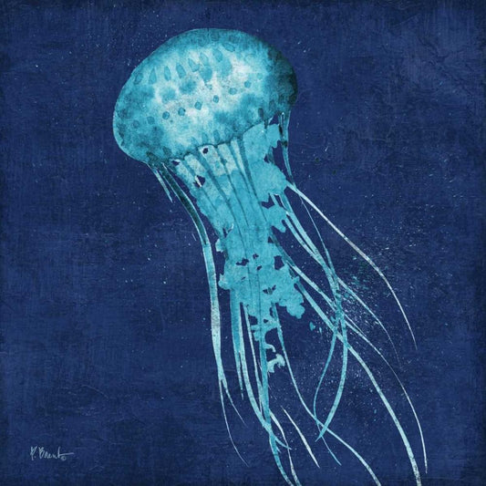 Indigo Jellyfish I Gold Ornate Wood Framed Art Print with Double Matting by Brent, Paul