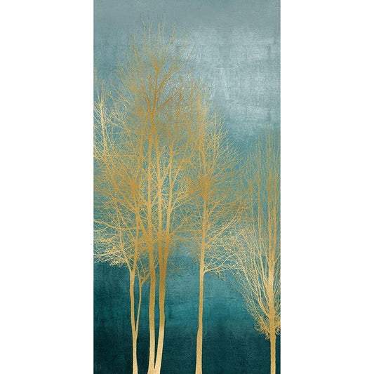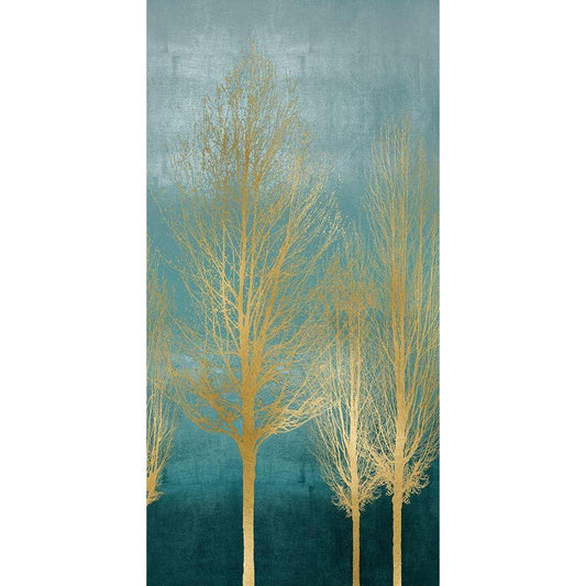 Gold Trees on Aqua Panel I Gold Ornate Wood Framed Art Print with Double Matting by Bennett, Kate