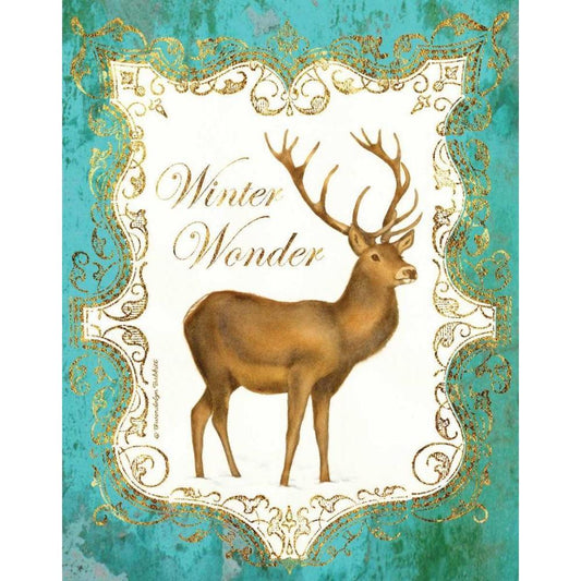 Deer in Snow Gold Ornate Wood Framed Art Print with Double Matting by Babbitt, Gwendolyn
