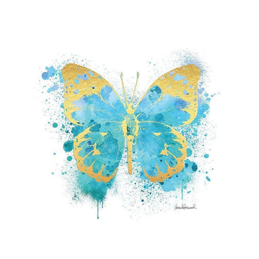 Butterfly Gold and Blue Gold Ornate Wood Framed Art Print with Double Matting by Greenwood, Amanda