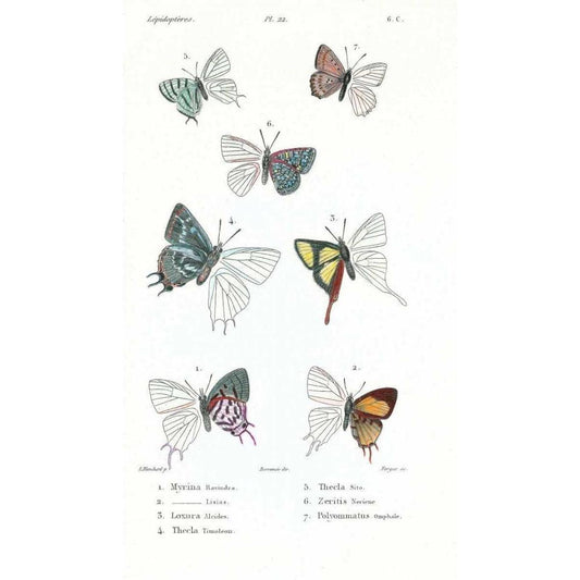 Buterflies, Plate 22 Gold Ornate Wood Framed Art Print with Double Matting by Blanchard, Emile