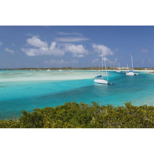 Bahamas, Exuma Island Moored sailboats Gold Ornate Wood Framed Art Print with Double Matting by Paulson, Don