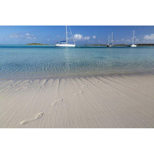 Bahamas, Exuma Island Footprints and sailboats Gold Ornate Wood Framed Art Print with Double Matting by Paulson, Don